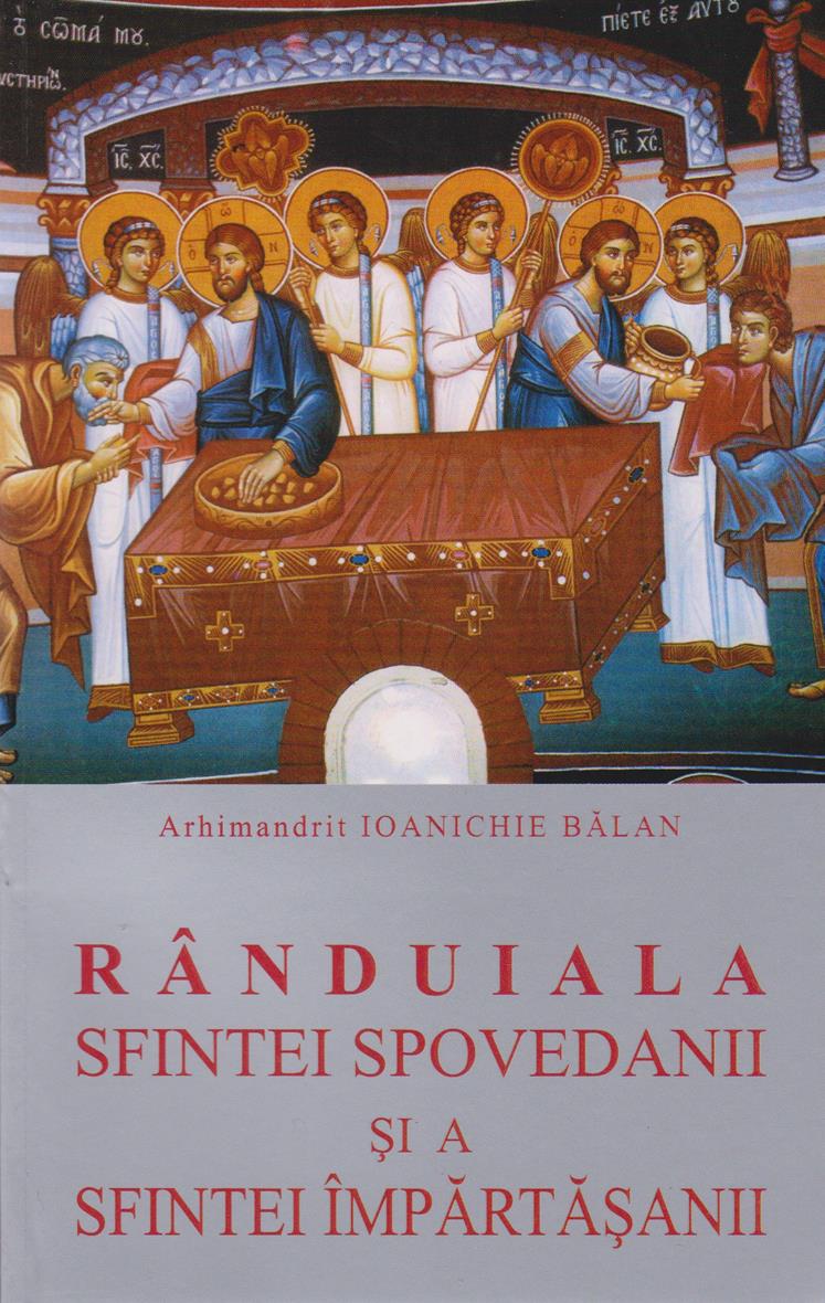 Aşadar, ne spovedim şi ne împărtăşim pentru că dorim învierea şi viaţa veşnică a împărăţiei cerurilor (Ioan 6,54-58). Cartea Rânduiala Spovedaniei şi a împărtăşaniei scrisă de părintele arhimandrit Ioanichie Bălan de la Sfânta mănăstire Sihăstria, ne oferă într-o formă simplificată şi dialogică un îndreptar practic sau o călăuză pentru spovedanie, mai ales azi, când multă lume a pierdut obişnuinţa şi priceperea de-a se spovedi. În locul reflexiei teologice aprofundate, autorul a ales forma de abordare moral-canonică a spovedaniei, tocmai pentru a-i da un caracter pedagogic mai popular şi mai accesibil.