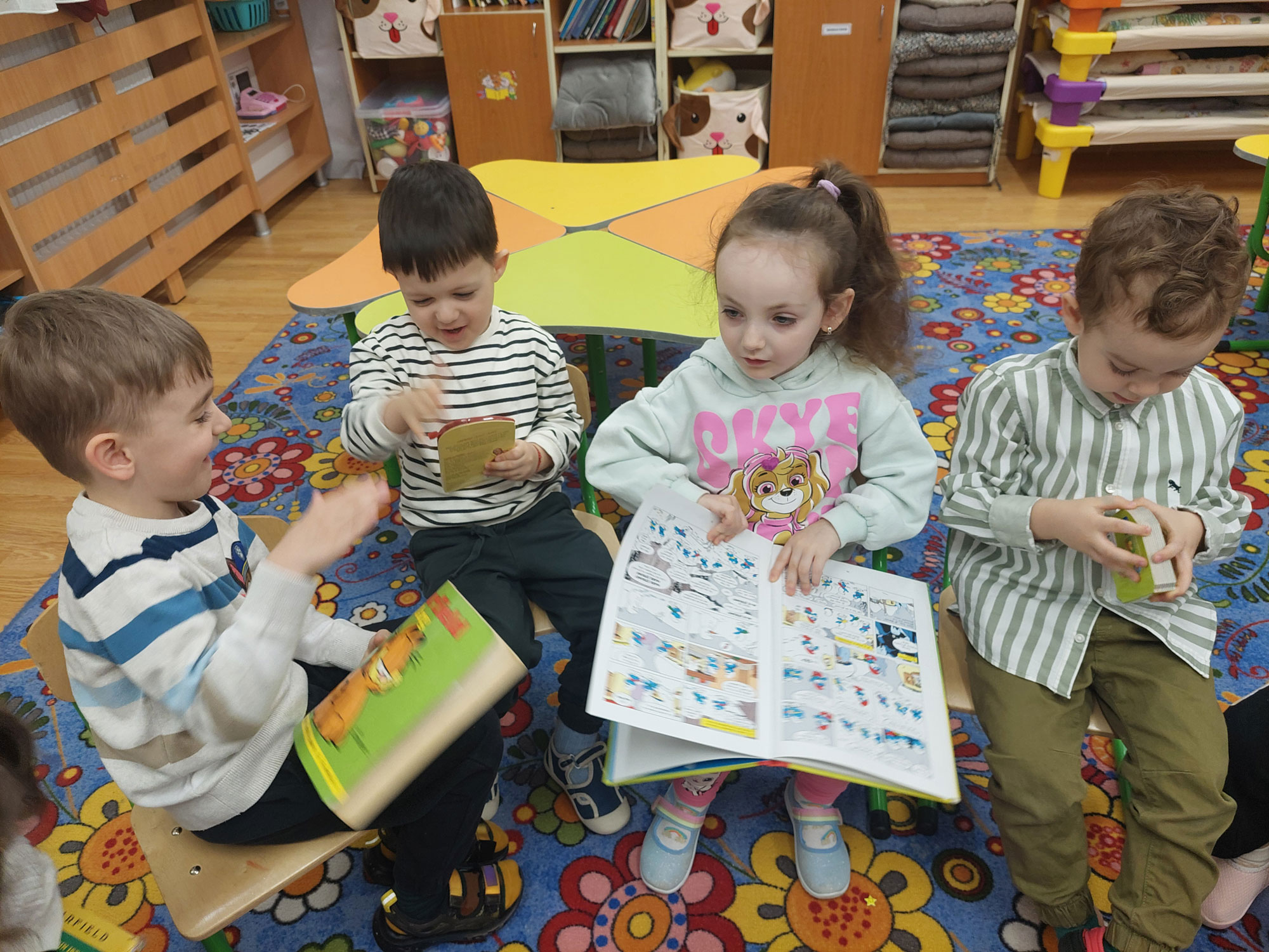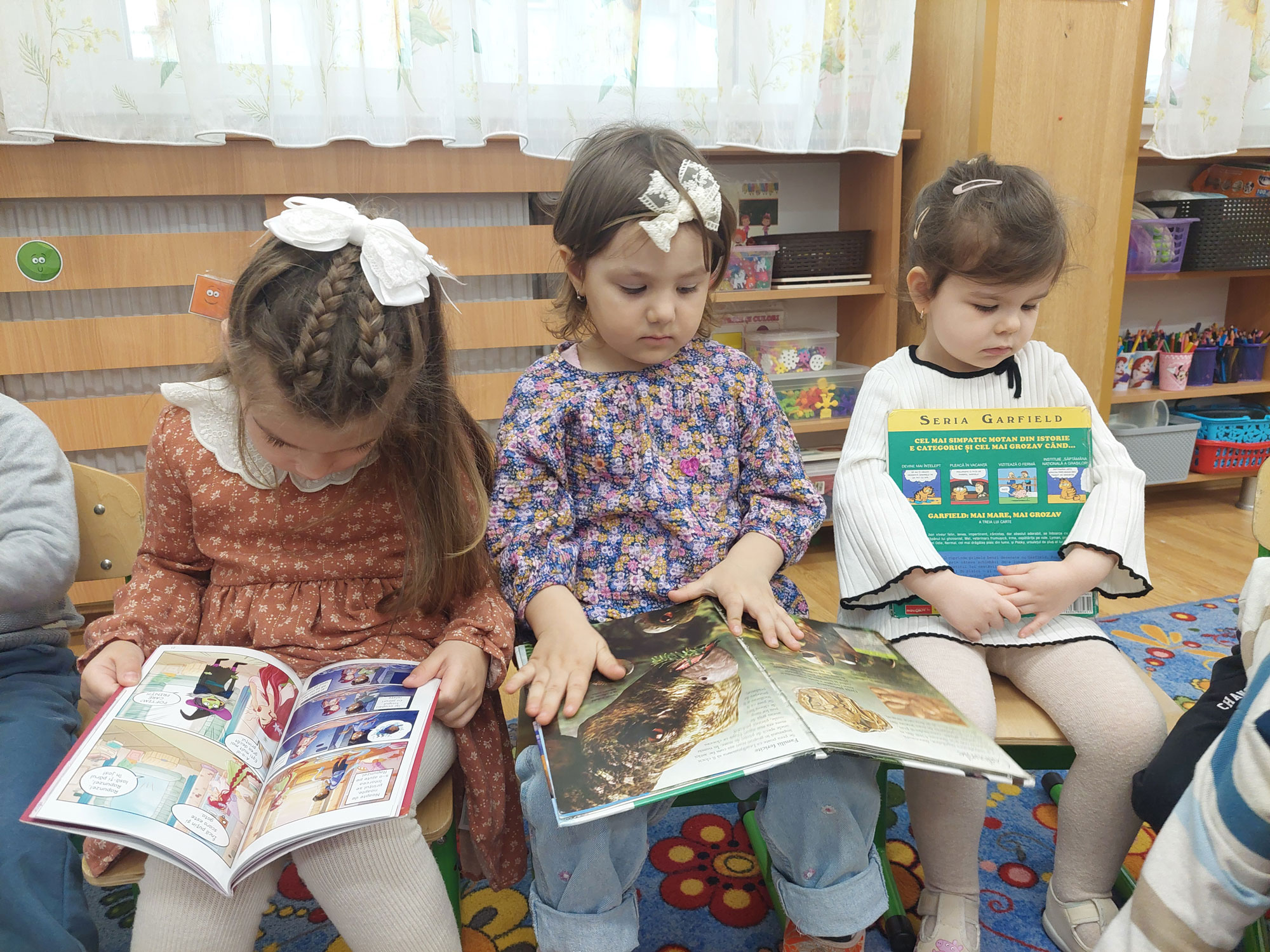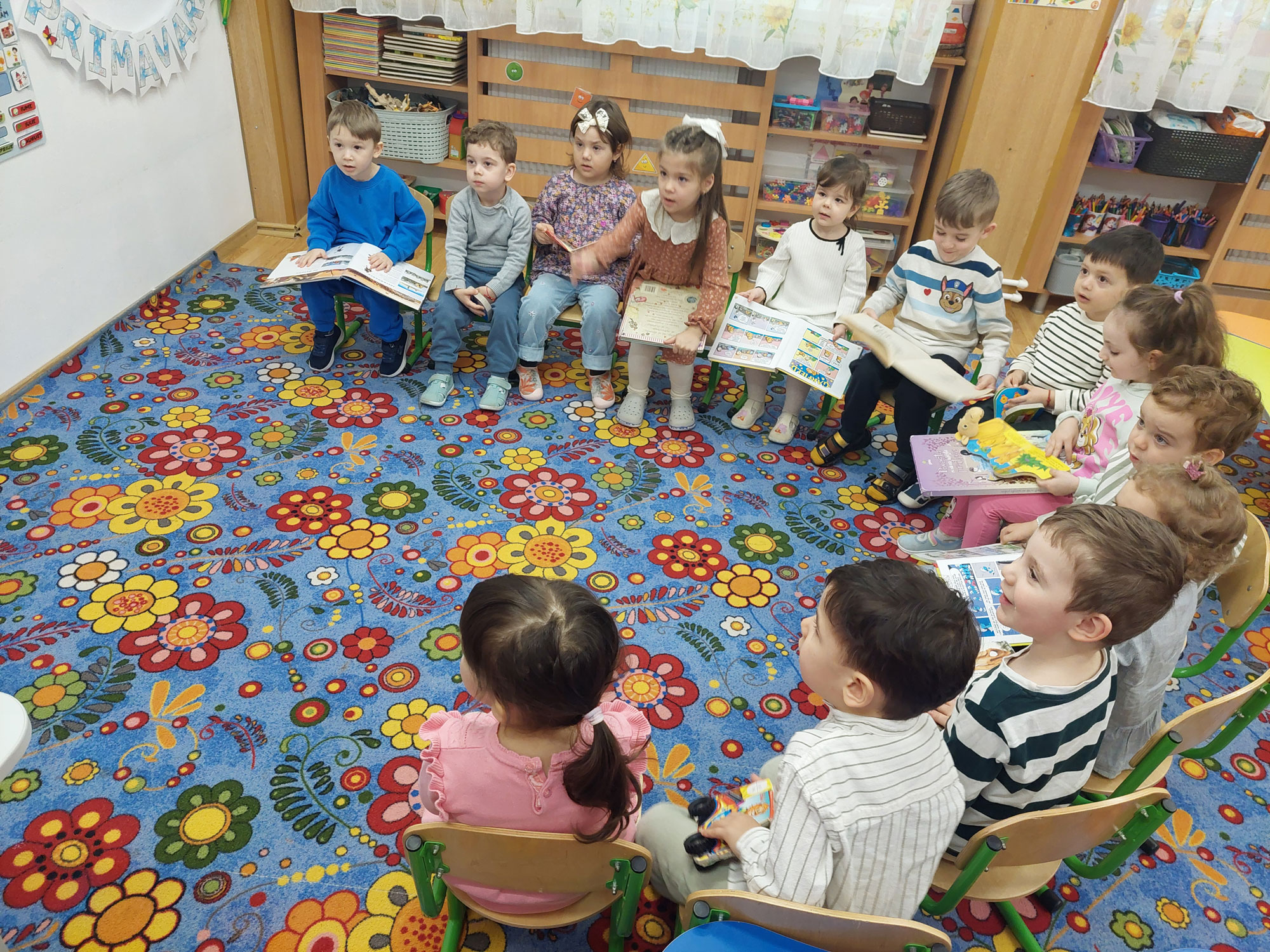 Am fost primiți cu dragoste și căldură, iar noi le-am prezentat, ca dar de bun-găsit, câteva dintre cele mai frumoase și mai reprezentative cărți specifice vârstei lor, care le-au stârnit imediat interesul și imaginația.