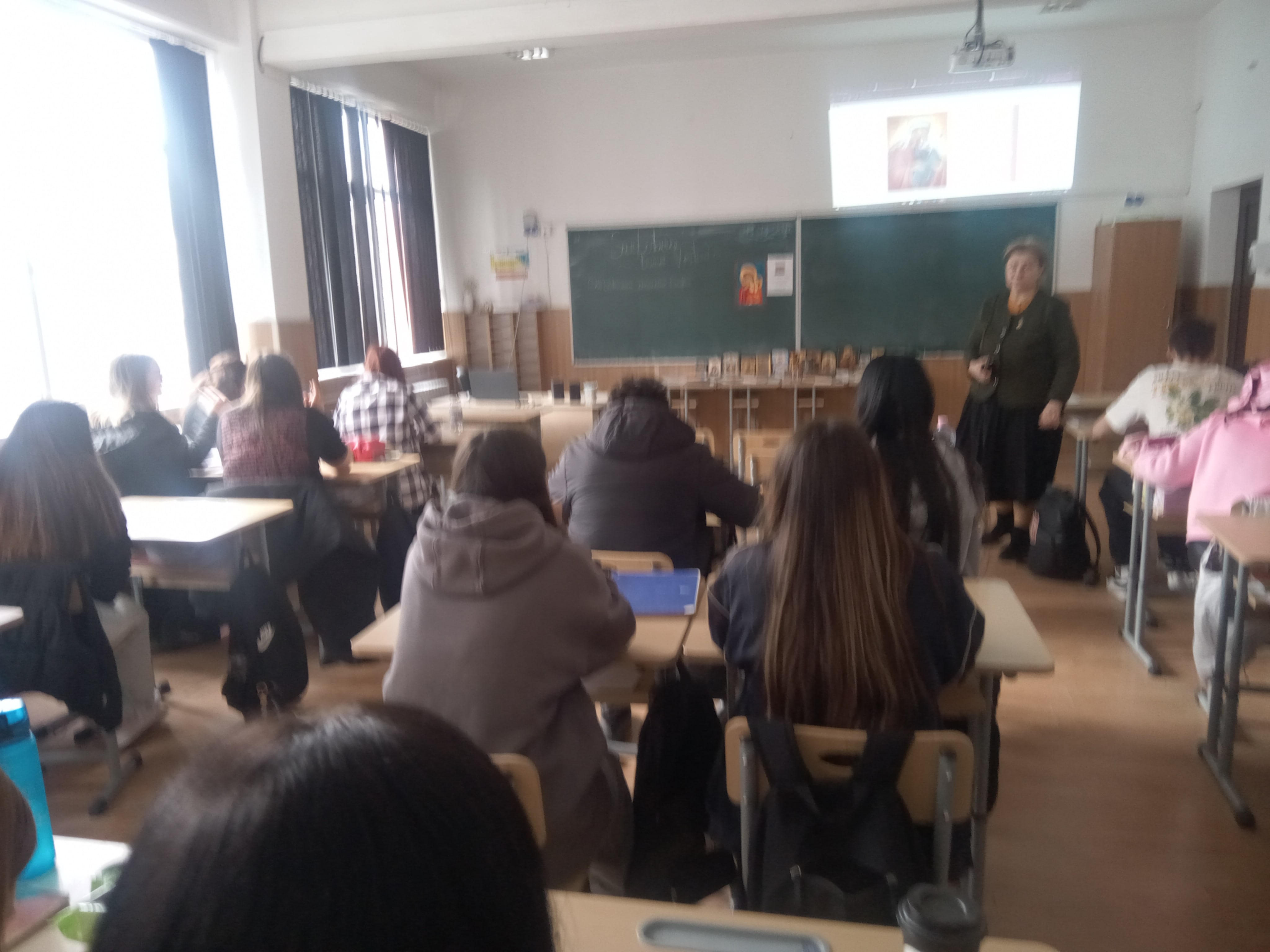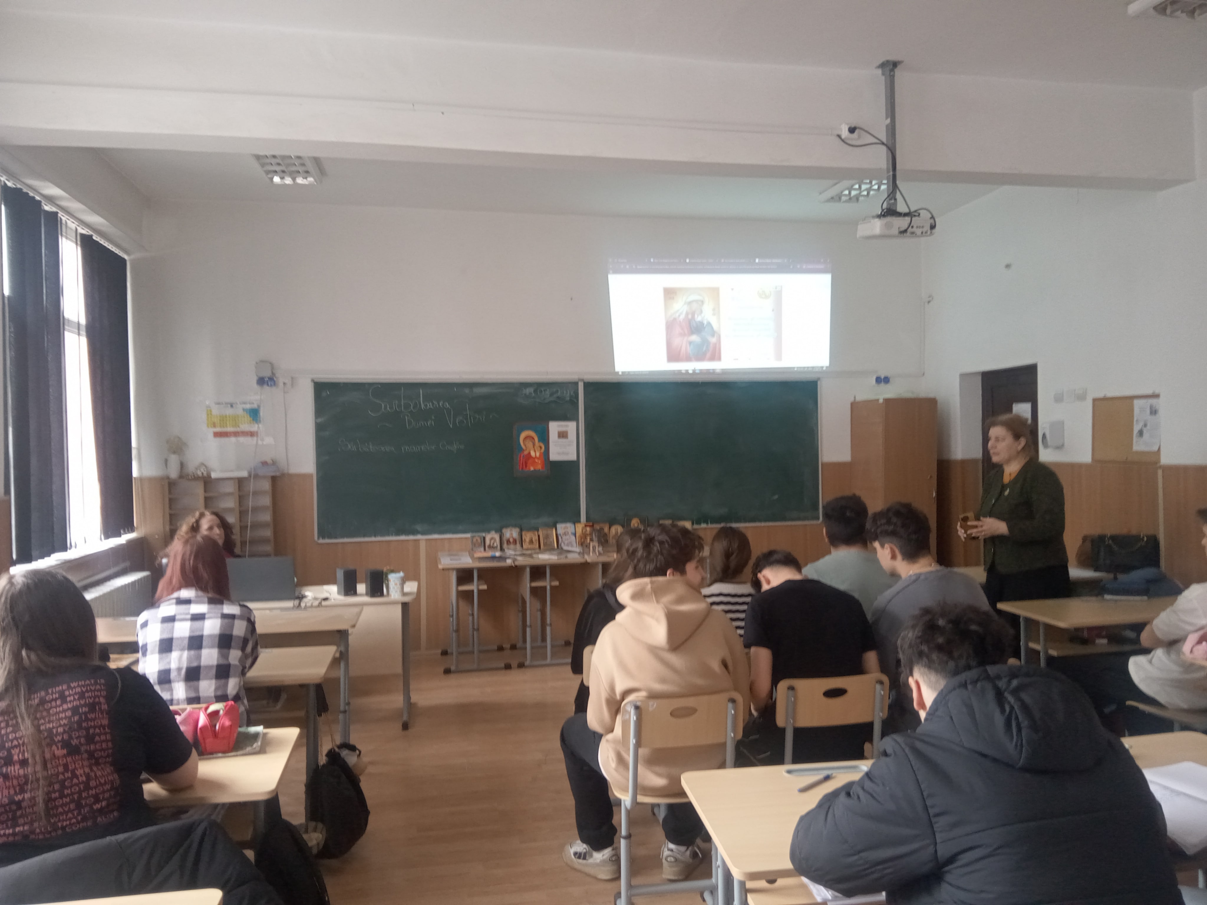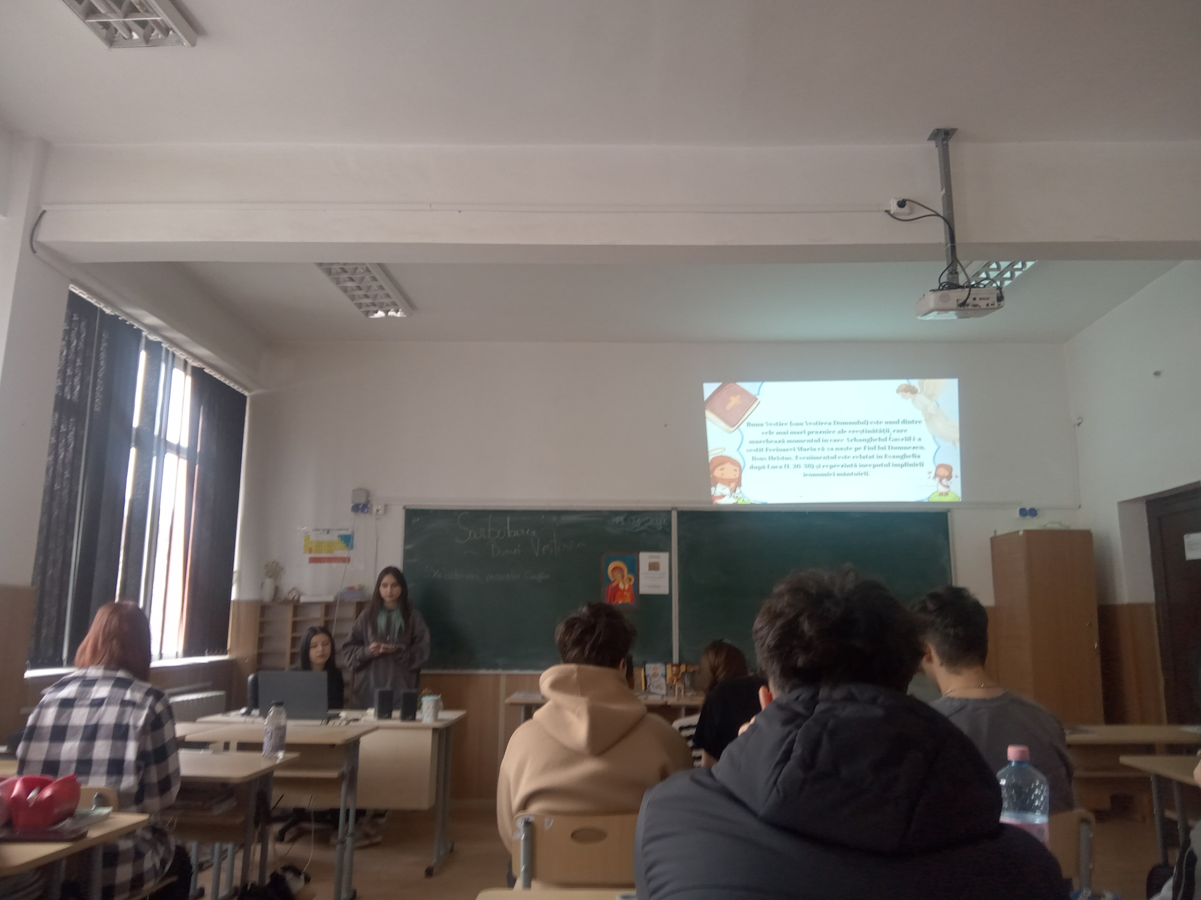 În această zi de 25 martie am vorbit mai ales despre rolul Mamei în viața de familie, a importanței Bunei Vestiri în viața fiecăruia dintre noi, acesta fiind frumos subliniat de elevii Daria Ioana Balan și Elena Sofia Damaschin, prin prezentarea PPT pe care au realizat-o, dar și de tinerii: Teodora Ceobanu, Mihai Luca Andrei, Teodora Mihăilă, Bogdan Tănasă, Elena Bulgaru, Eduard Ailenei și Iulian Ștefan Ștefiuc, care au muncit la realizarea icoanelor pe sticlă a Sfintelor Femei canonizate în acest an. Mulțumim invitației de a participa în cadrul acestor întâlniri la care reprezentanții bibliotecii județene pot susține lectura de calitate despre semnificația familiei și care încurajează adolescenții să participe la Concursul Național Catehetic – proiect inițiat de Biserica „Sfântul Nectarie” din Iași cu sprijinul Patriarhiei Române.