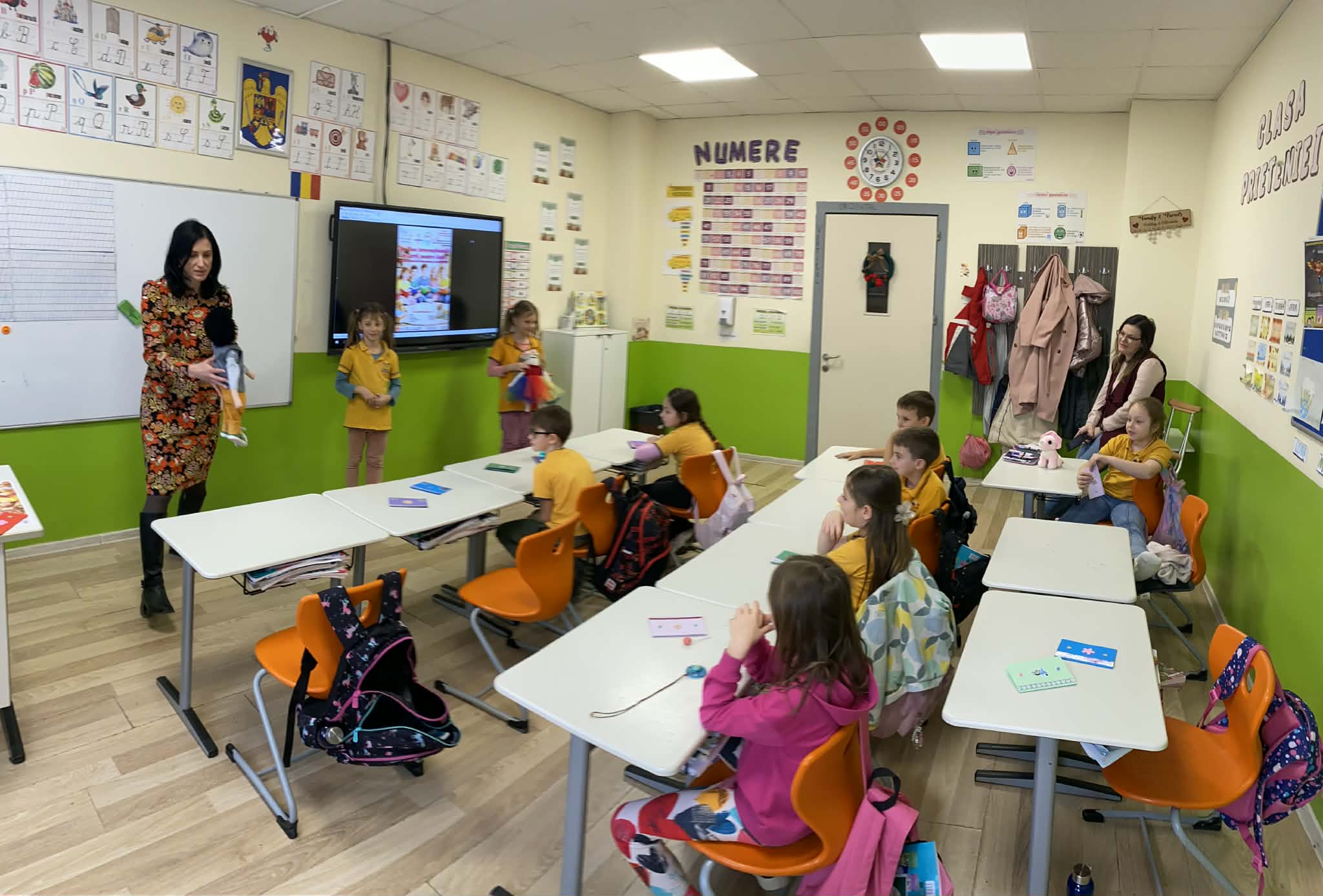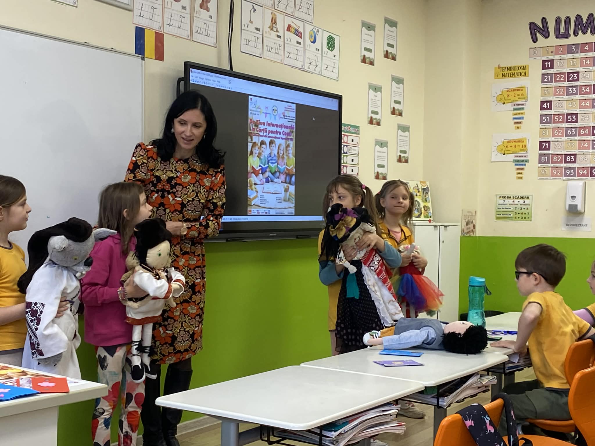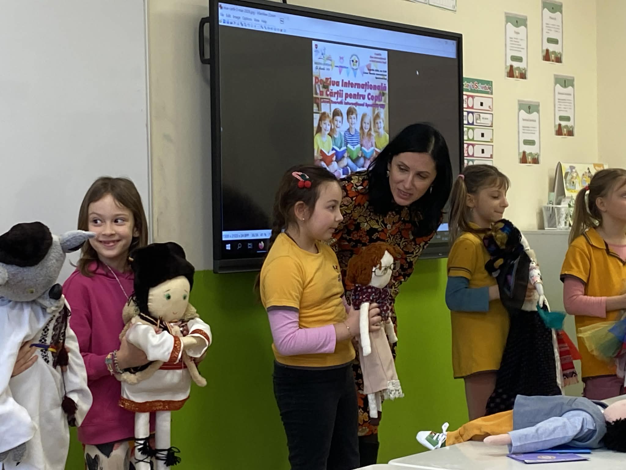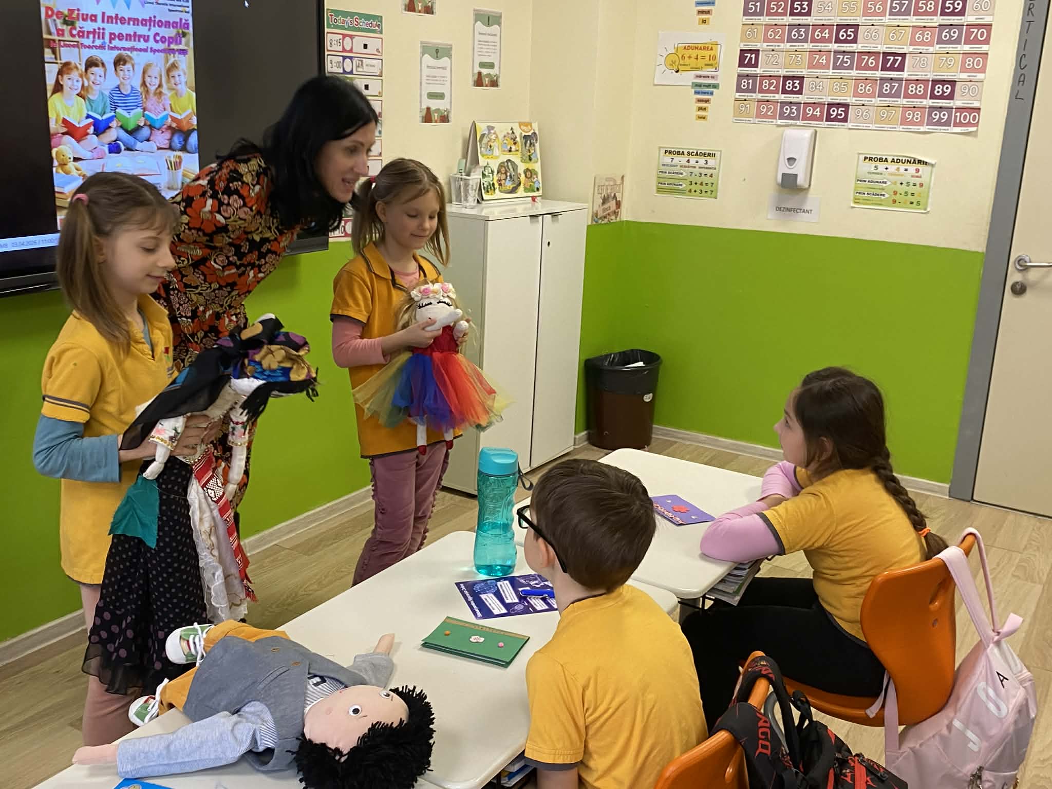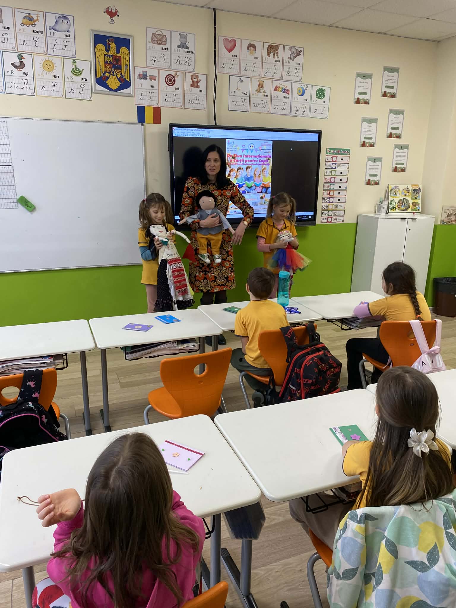 Publicul format din micuții elevi de la clasa a I-a B (prof. înv. primar Luiza Gaiță) au fost binedispuși să afle cât mai multe despre personajele preferate din povești, să cănte, să danseze și să recite împreună cu invitata activității, Irina Olariu.