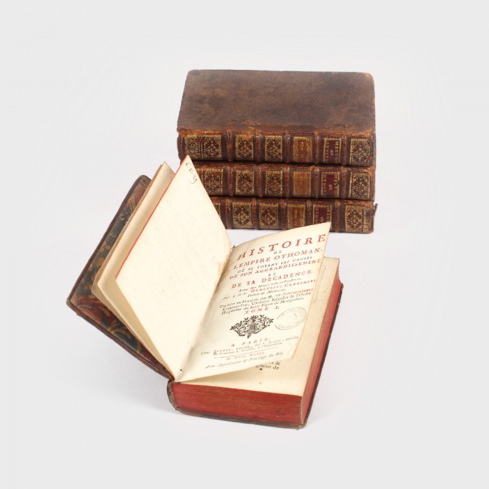 Histoire de l’empire othoman où se voyent les causes de son aggrandissement et de sa décadence avec des notes très instructives par S.A.S. Demetrius Cantimir Prince de Moldavie. Vol. 1‑2. Traduite en français par M. de Joncquières, Commandeur Chanoine. Paris, Nyon, 1743.