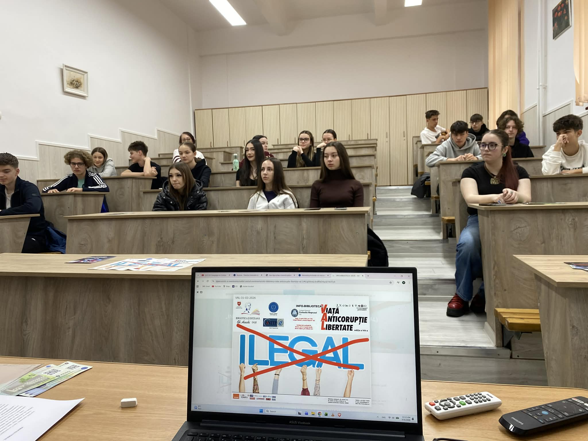 Biblioteca Județeană „Gh. Asachi” Iași a desfășurat o sesiune de informare preventivă marți, 31 martie 2026 în cadrul proiectului: ”INFO.BIBLIOTECA: VIAȚĂ – ANTICORUPȚIE – LIBERTATE” (VAL).