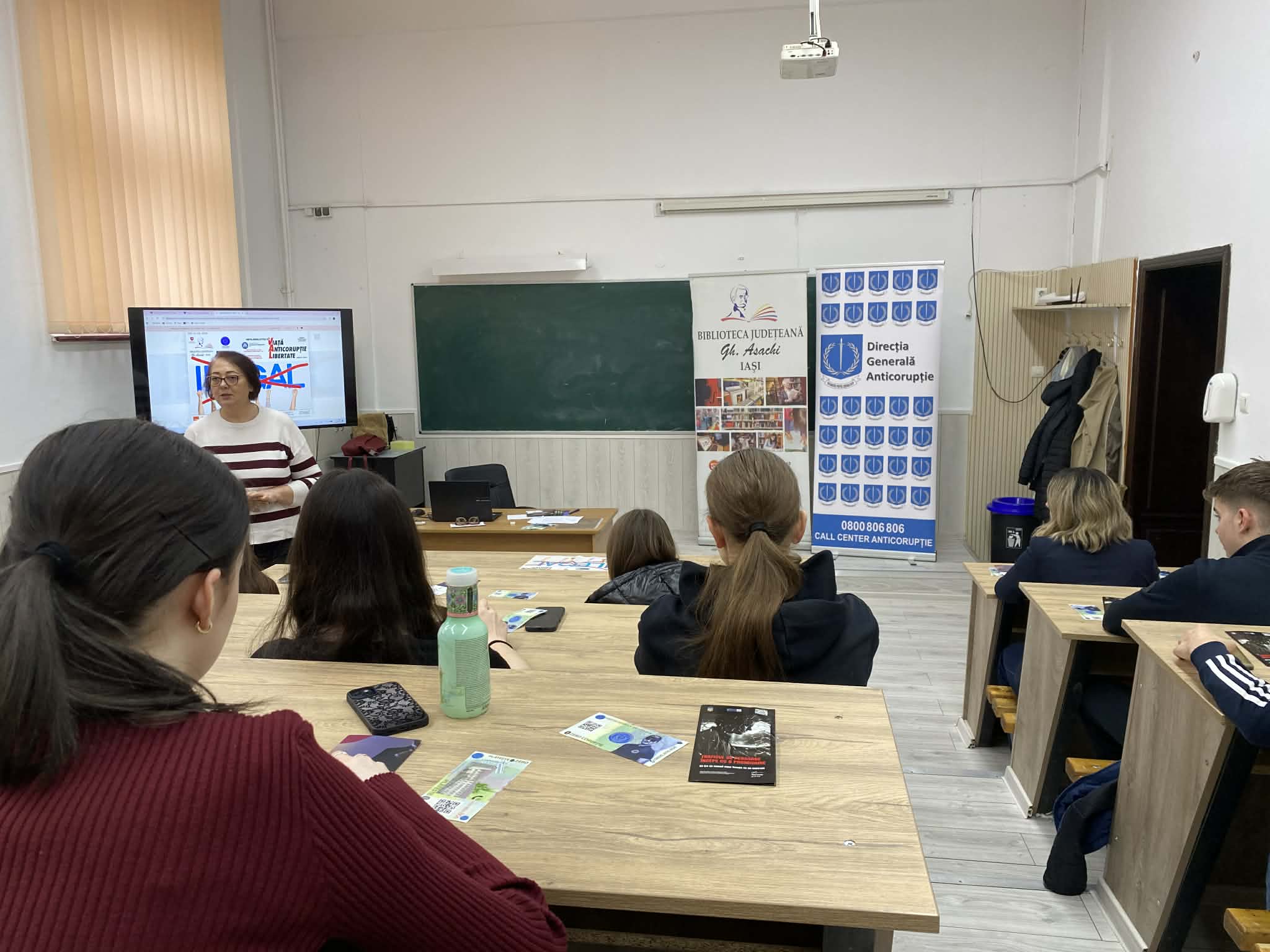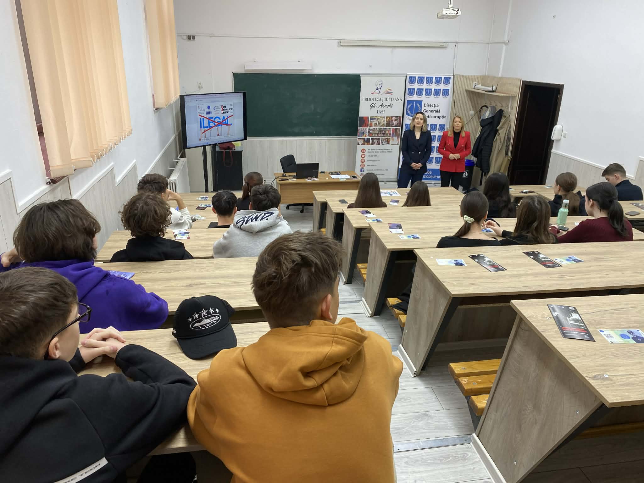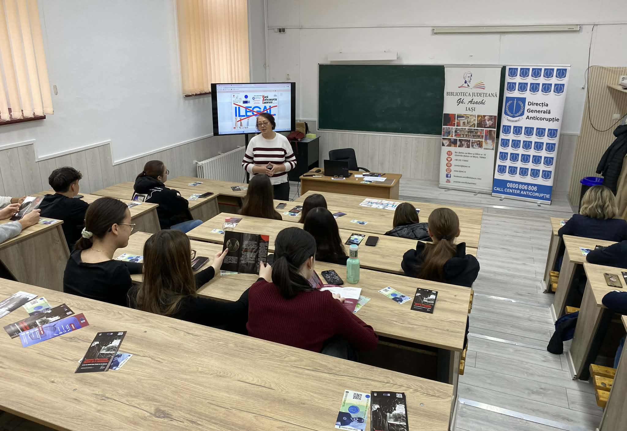 La sesiunea de informare preventivă au fost prezenți elevii de la Colegiul Național „Costache Negruzzi” Iași împreună cu prof. Cristina Mocanu.