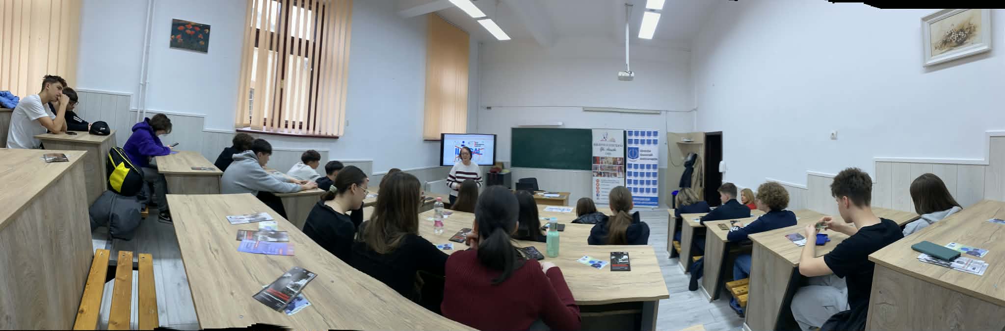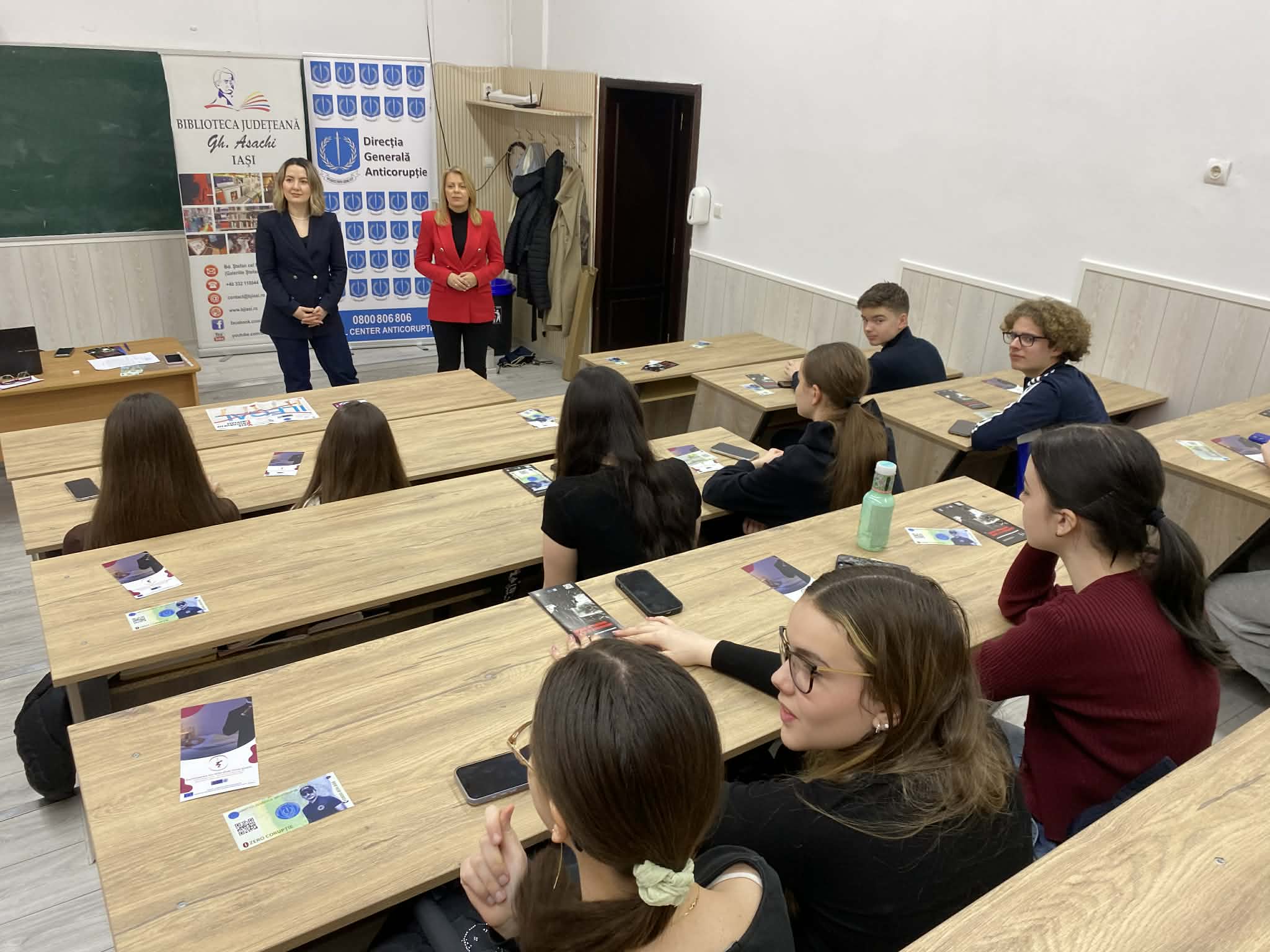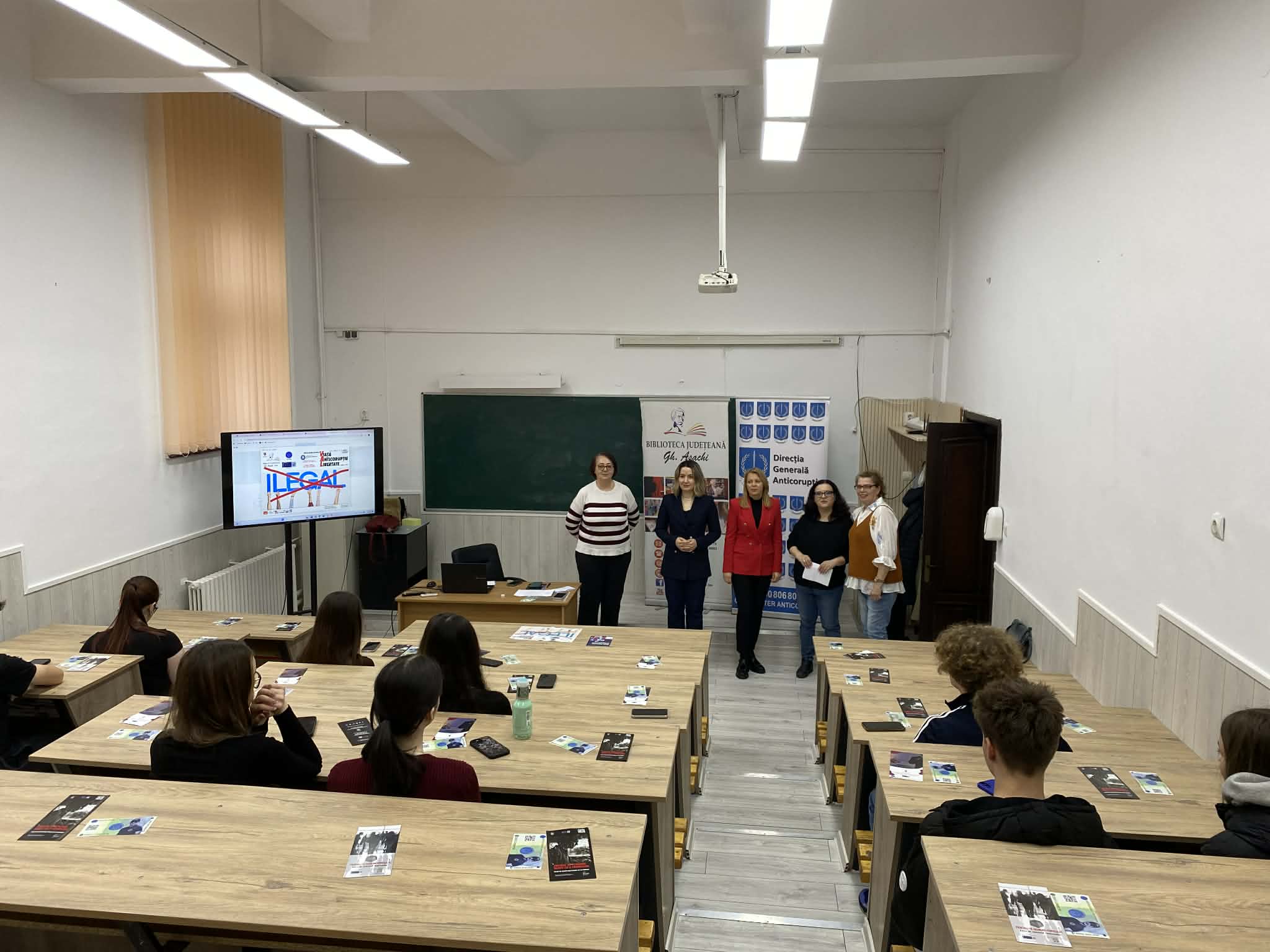 La sesiunea de informare preventivă au fost prezenți elevii de la Colegiul Național „Costache Negruzzi” Iași împreună cu prof. Cristina Mocanu.