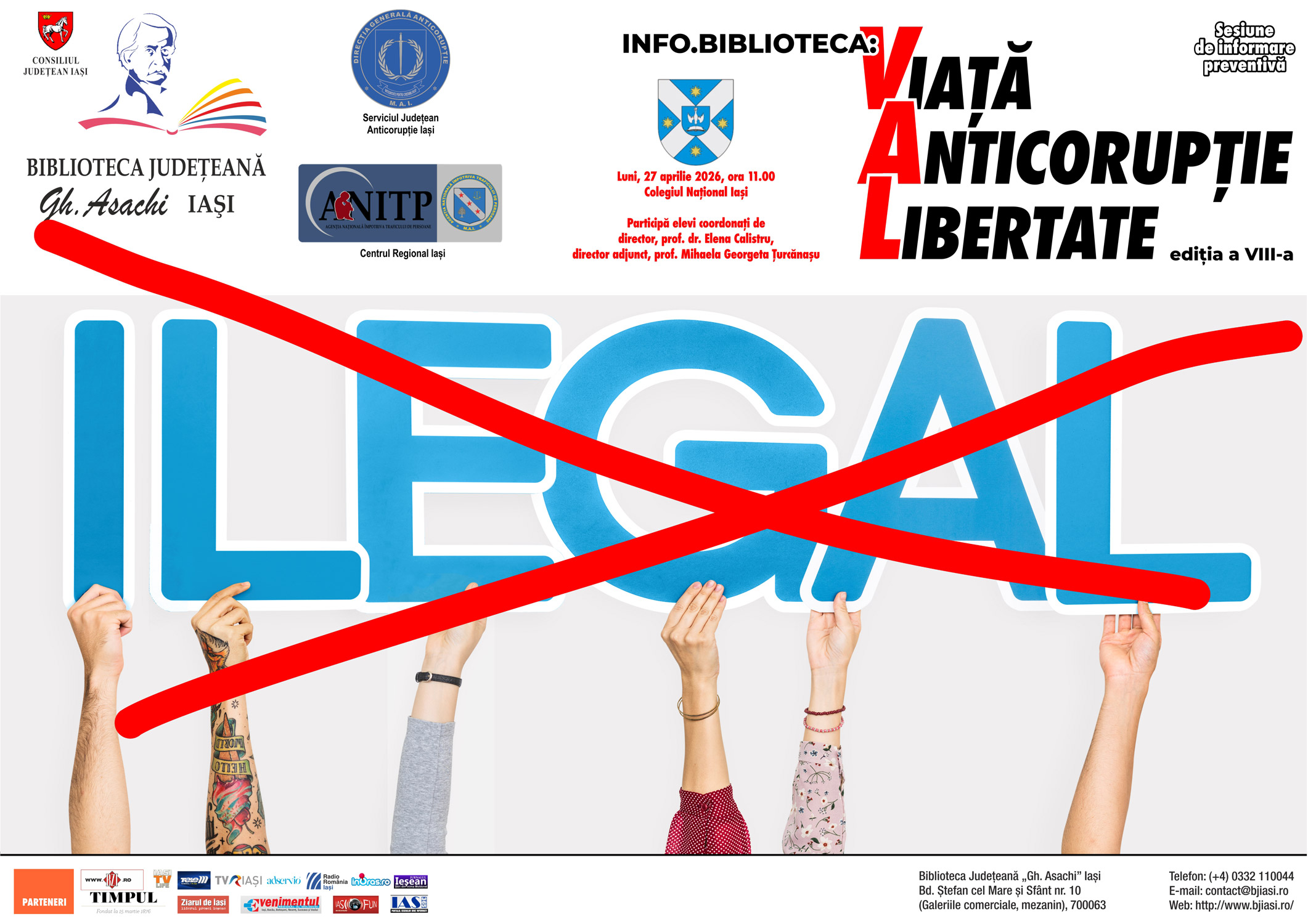 Un proiect educaţional – informațional – preventiv ajuns la ediția a VIII-a la inițiativa Bibliotecii Judeţene „Gh. Asachi” Iaşi împreună cu partenerii săi de specialitate: Direcția Generală Anticorupție (D.G.A.)-Serviciul Județean Anticorupție Iași și Agenţia Naţională Împotriva Traficului de Persoane (A.N.I.T.P.)-Centrul Regional Iași se numește: „INFO.BIBLIOTECA: VIAȚĂ – ANTICORUPȚIE – LIBERTATE” (VAL).