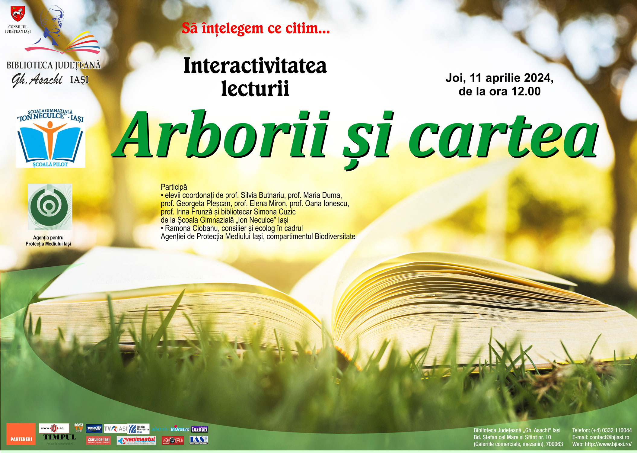 Joi, 11 aprilie 2024, de la ora 12.00, Biblioteca Judeţeană „Gh. Asachi” Iaşi în parteneriat cu Agenția pentru Protecția Mediului Iași și Școala Gimnazială „Ion Neculce” Iași, organizează activitatea Interactivitatea Lecturii – Arborii și cartea.