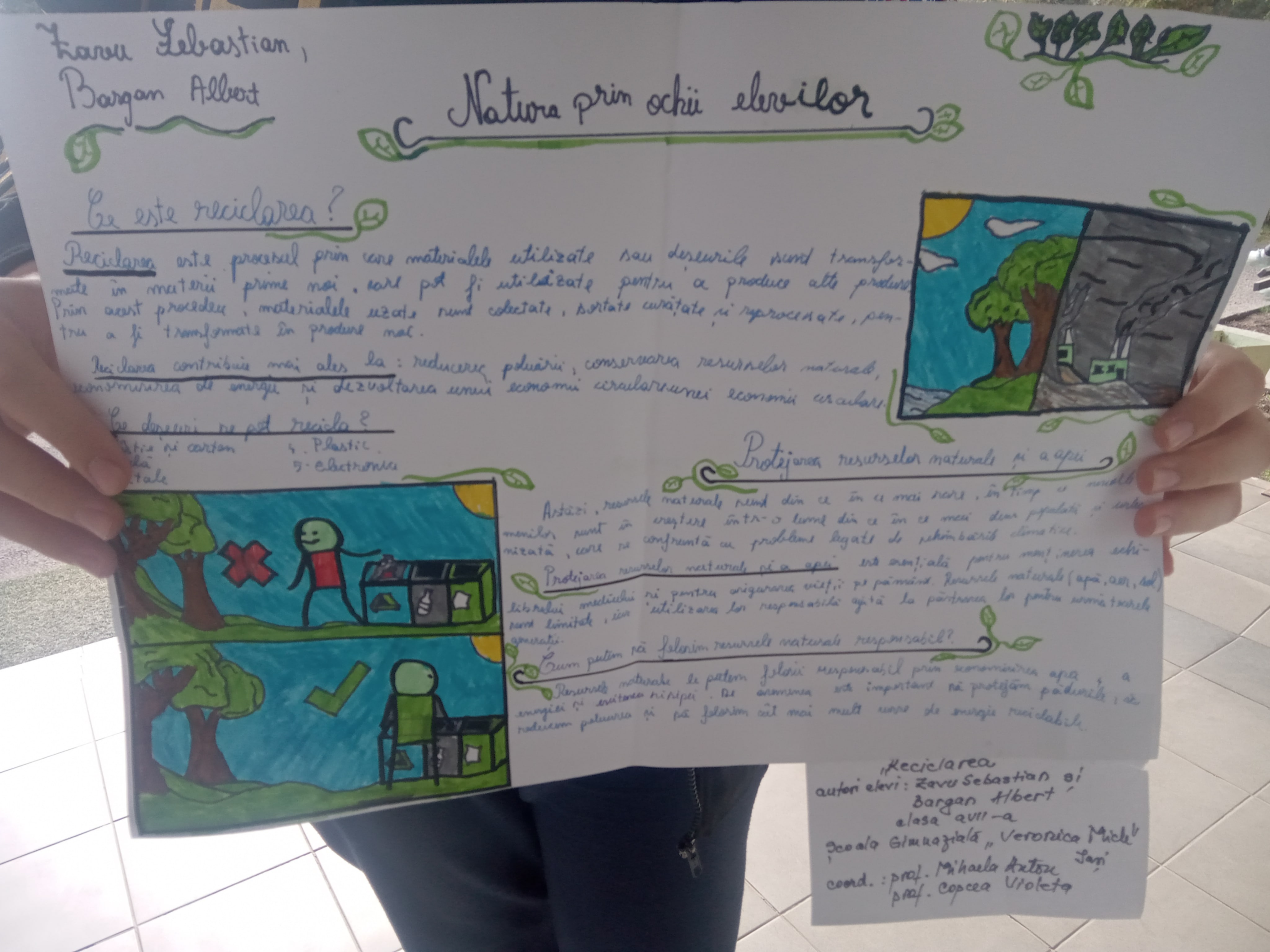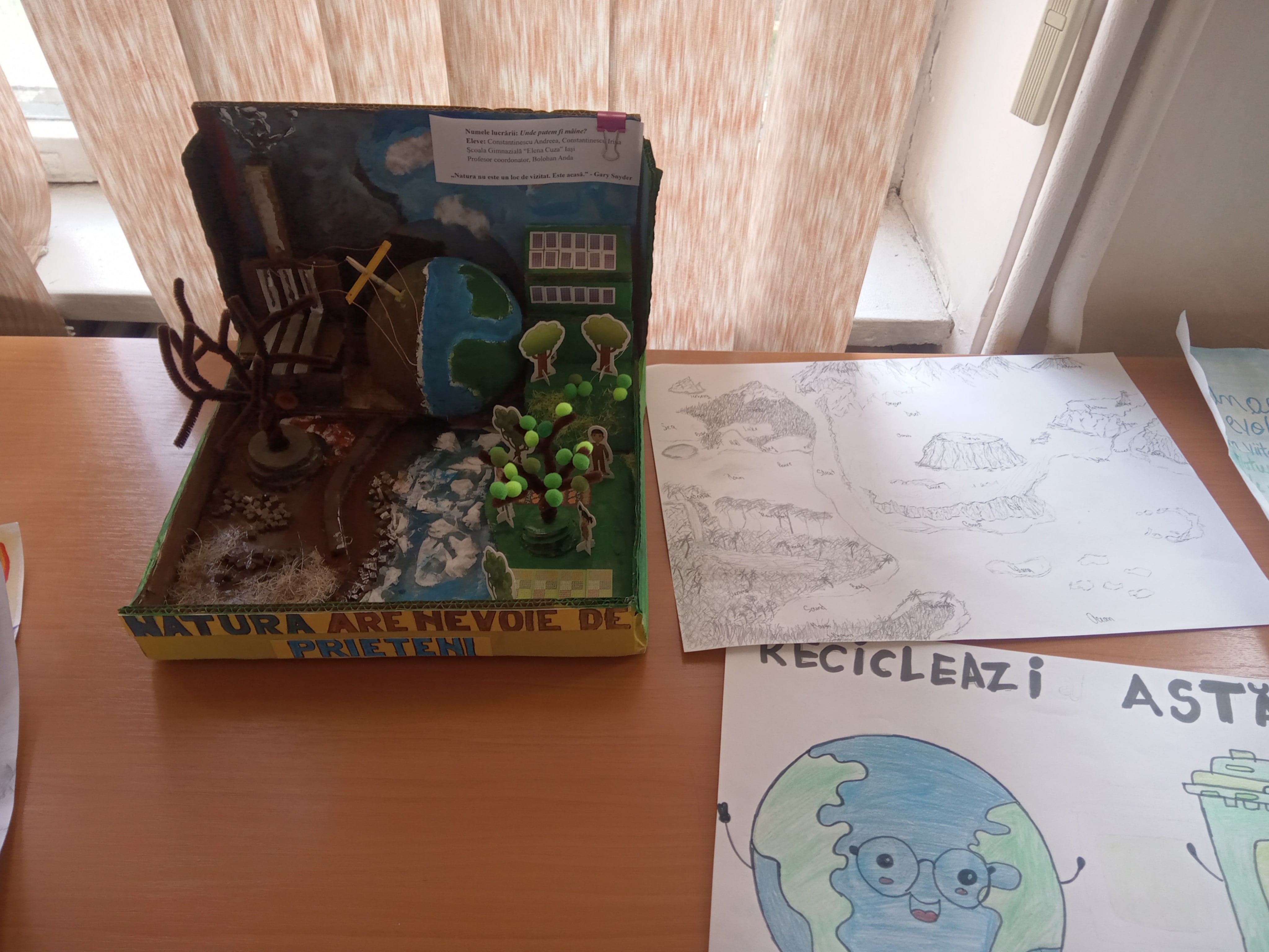 Activitatea a constat într-un concurs de machete, postere, desene și picturu cu tema Natura prin ochii elevilor, cu scopul de a stimula motivaţia pentru protecţia mediului, de a forma un comportament ecologic adecvat, prin asumarea unor responsabilităţi sociale şi conştientizarea importanţei menţinerii unui mediu cât mai curat.