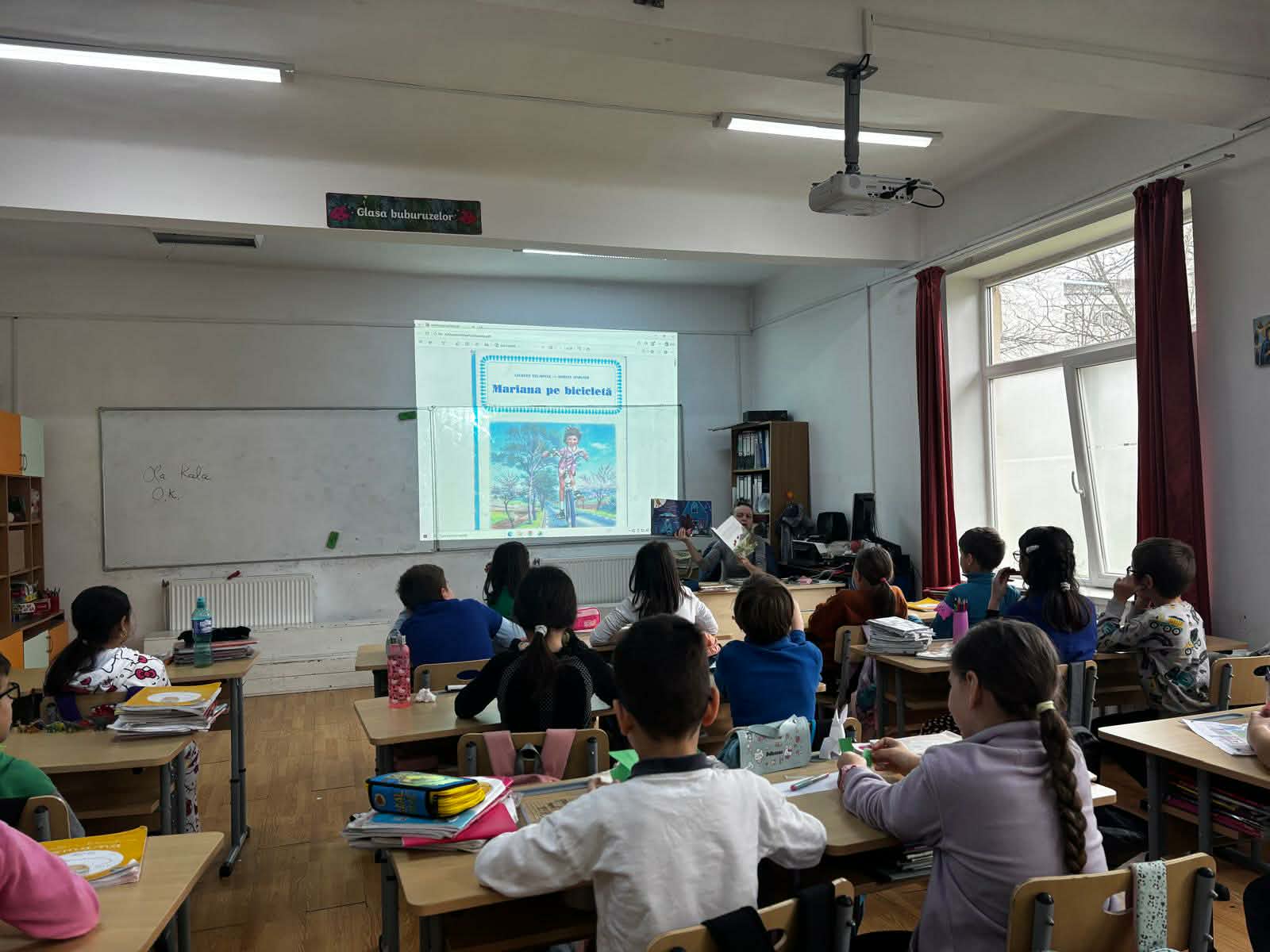 Elevii claselor primare, coordonați de prof. înv. primar Corina Lavric și prof. înv. primar Anca Anghel, au participat la două întâlniri în care am descoperit cărți diverse specifice fiecărei categorii de vârstă scrise de autori internaționali, am citit împreună cartea „Mariana pe bicicletă” de Gilbert Delahaye și Marcel Marlier și am aflat diferențele dintre bibliotecile personale și cele comunitare.