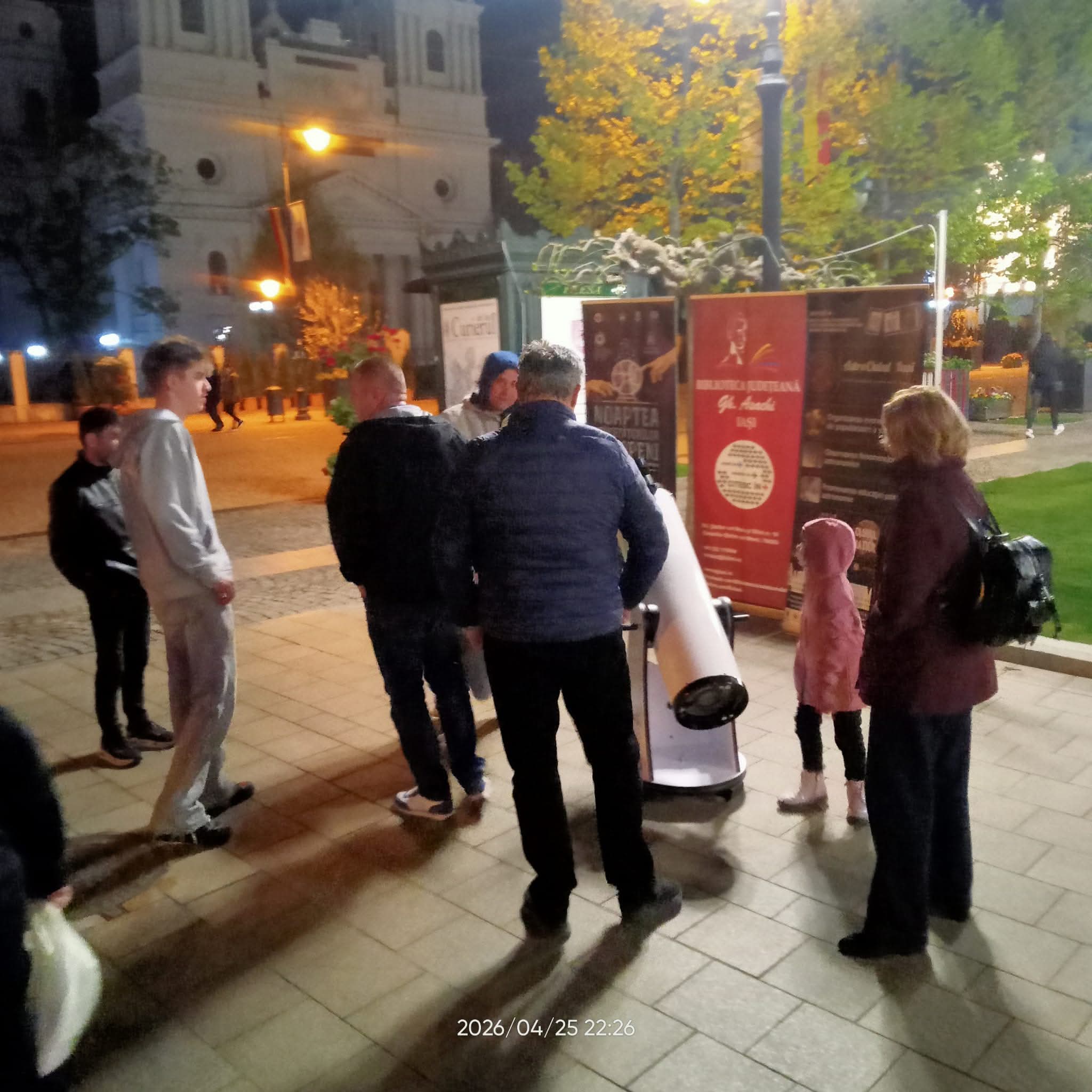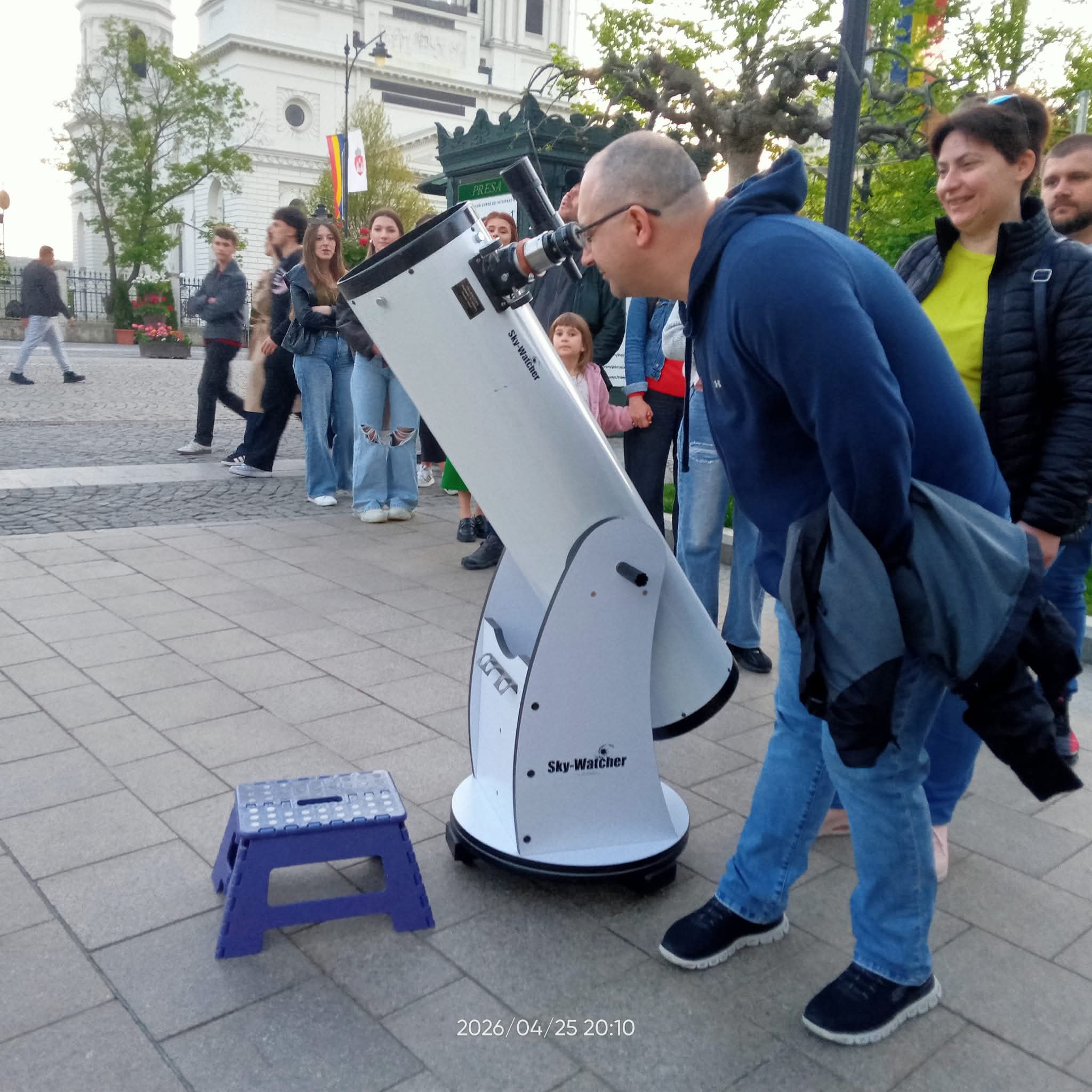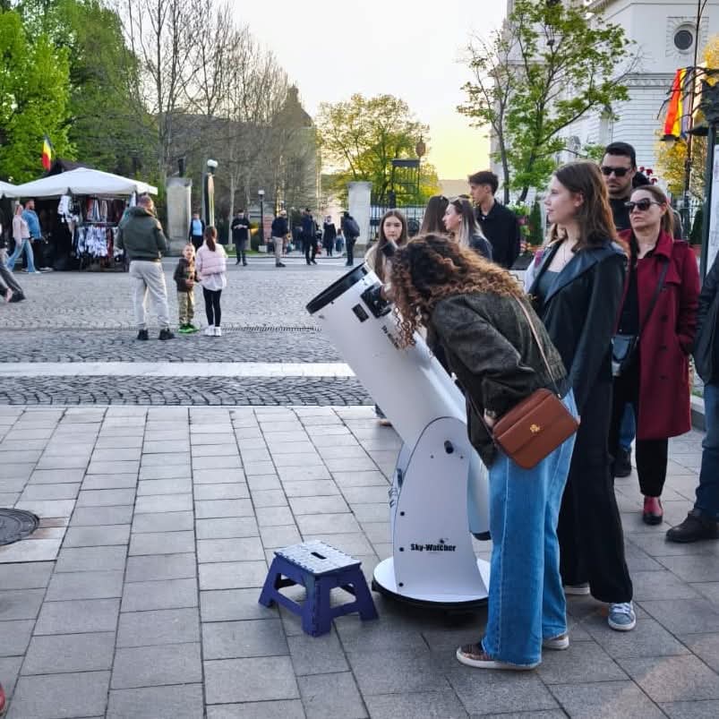 Dar dincolo de lentilele telescoapelor, ceea ce ne-a impresionat cu adevărat a fost entuziasmul participanților. Pietonalul a devenit un adevărat punct de întâlnire al culturilor și al generațiilor: oameni de toate vârstele și din toate colțurile lumii – francezi, germani, indieni sau greci – de la copii care priveau pentru prima dată prin telescop cu uimire, până la seniori pasionați de tainele Cosmosului. Discuțiile despre Univers, purtate în mai multe limbi, dar sub același cer, ne-au reconfirmat faptul că setea de cunoaștere este universală și infinită.