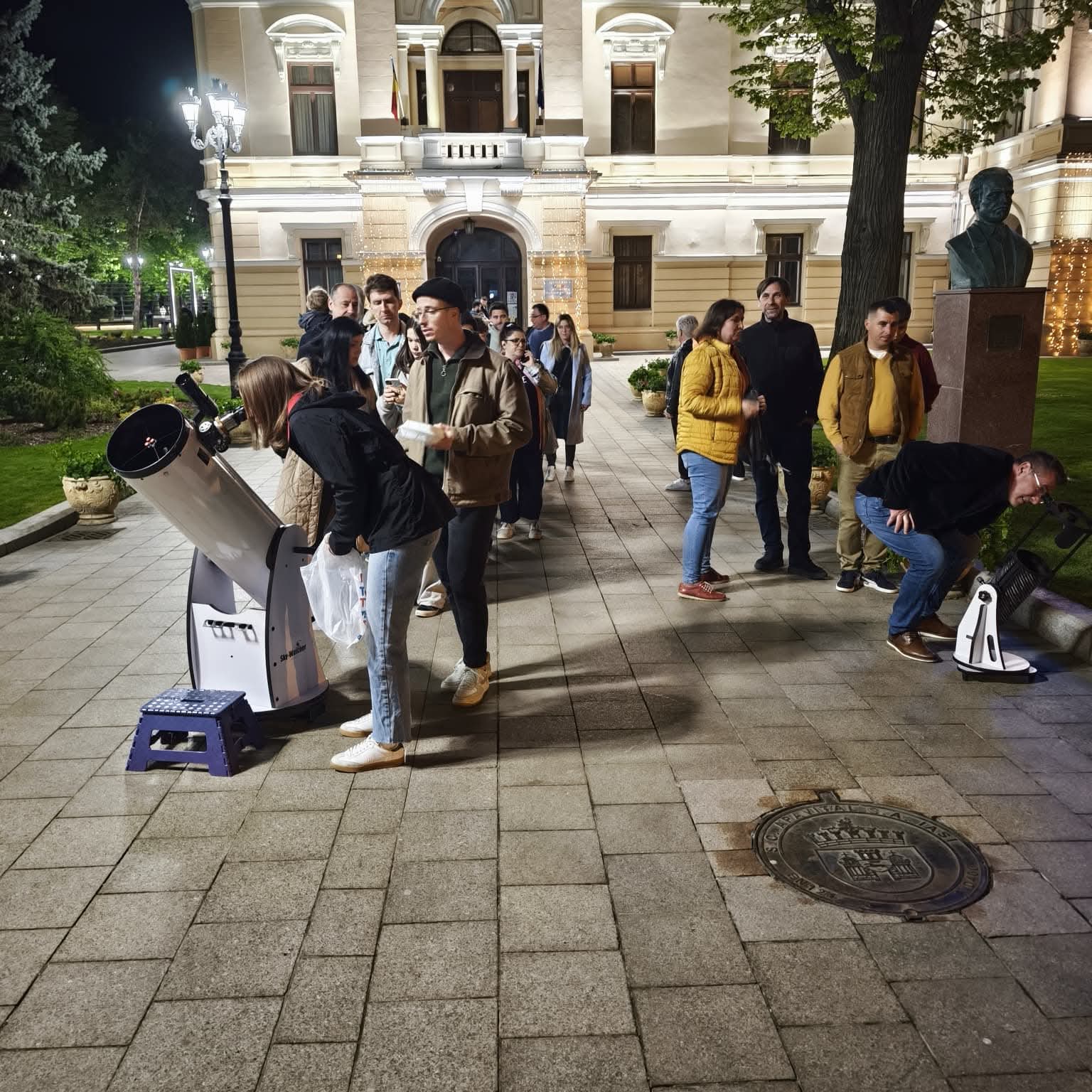 De Ziua Internațională a Astronomiei am explorat împreună tainele cerului înstelat, chiar în inima orașului. Alături de partenerii noștri de la AstroClubul Iași și Fundaţia Academică „Idei şi Fapte pentru anii 2000” Iași, am transformat zona din fața Primăriei într-un veritabil observator astronomic urban.